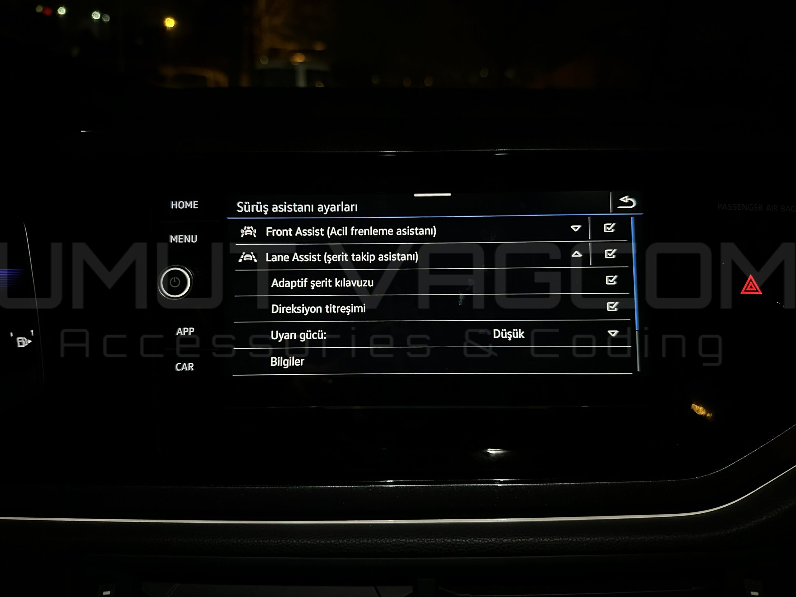 2024 model ve sonrası Volkswagen grubu araçlarda fabrikasyon olarak şerit takip altyapısına sahip araçlarda Adaptif Şerit Kılavuzu Aktivasyonu işlemini profesyonel yazılım kodlama ile gerçekleştiriyoruz.